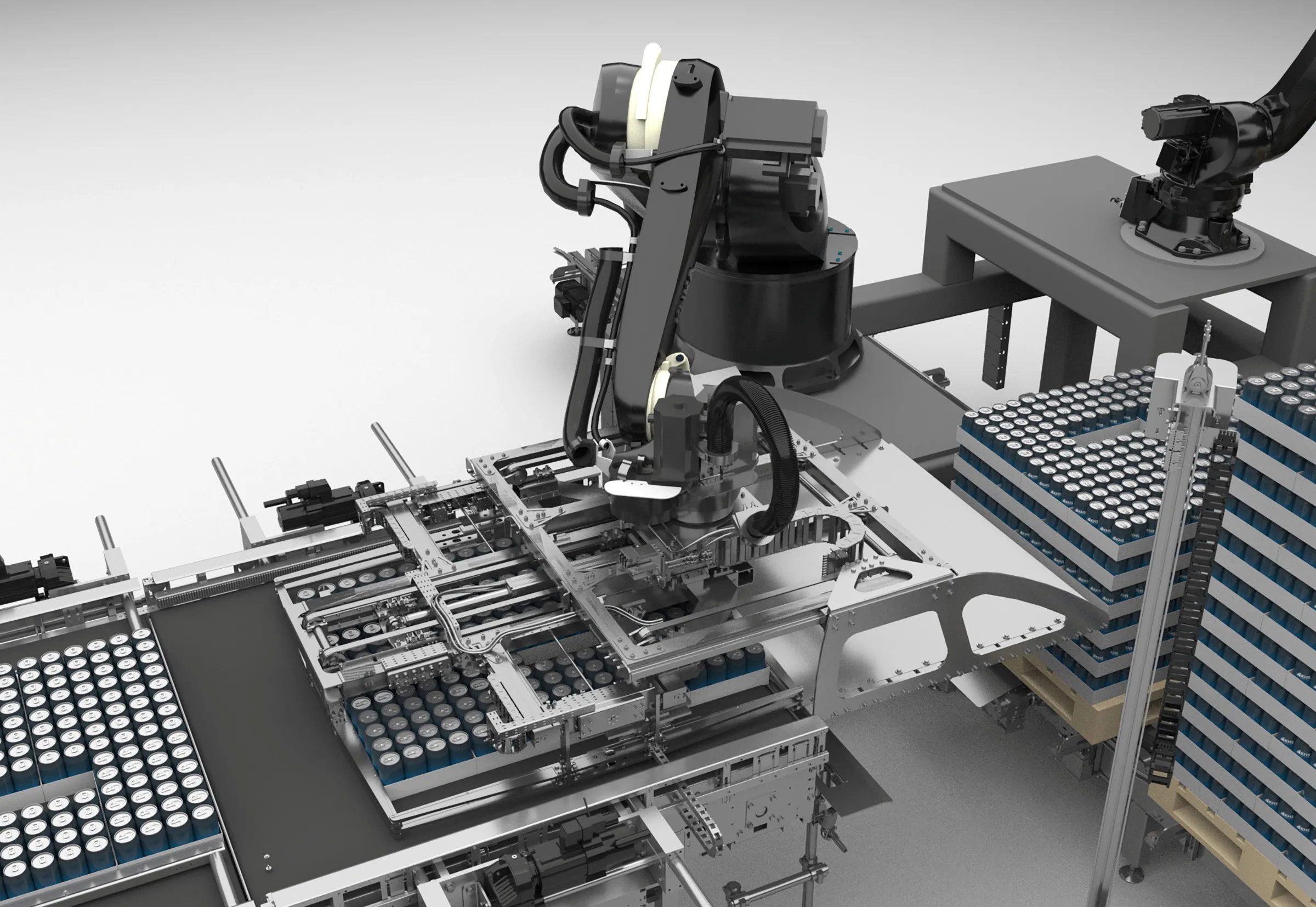 Gracias a la última generación de robots, la Innopal PLR está diseñada específicamente para satisfacer las exigencias del segmento de alto rendimiento, alcanzando una capacidad de hasta 650 camadas por hora en líneas de PET y latas.