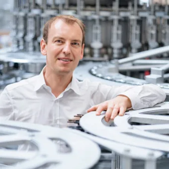 El sistema de agrupamiento del paletizador está equipado con la nueva opción InnoPET iflex, que permite un cambio de formato totalmente automático. “El operario solo tiene que seleccionar la configuración en la HMI”. Los robots seleccionan de forma autónoma las pinzas de agarre adecuadas y las sustituyen”, explica Kretschmann. El alto grado de automatización favorece la eficiencia, la seguridad y la velocidad del cambio de formato, reduciendo la carga de trabajo para los operarios.